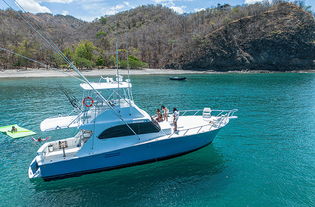 Join us on the best sport fishing trip in Guanacaste. Our 47-foot yacht, equipped with the best fishing gear available, offers half-day, three-quarter-day, and full-day deep-sea fishing charters. We serve several areas of Guanacaste, including Flamingo, Conchal, Potrero, Langosta, Playa Grande, Tamarindo, Las Catalinas, El Coco, Ocotal, Hermosa, Riu, as well as the entire Papagayo Peninsula.